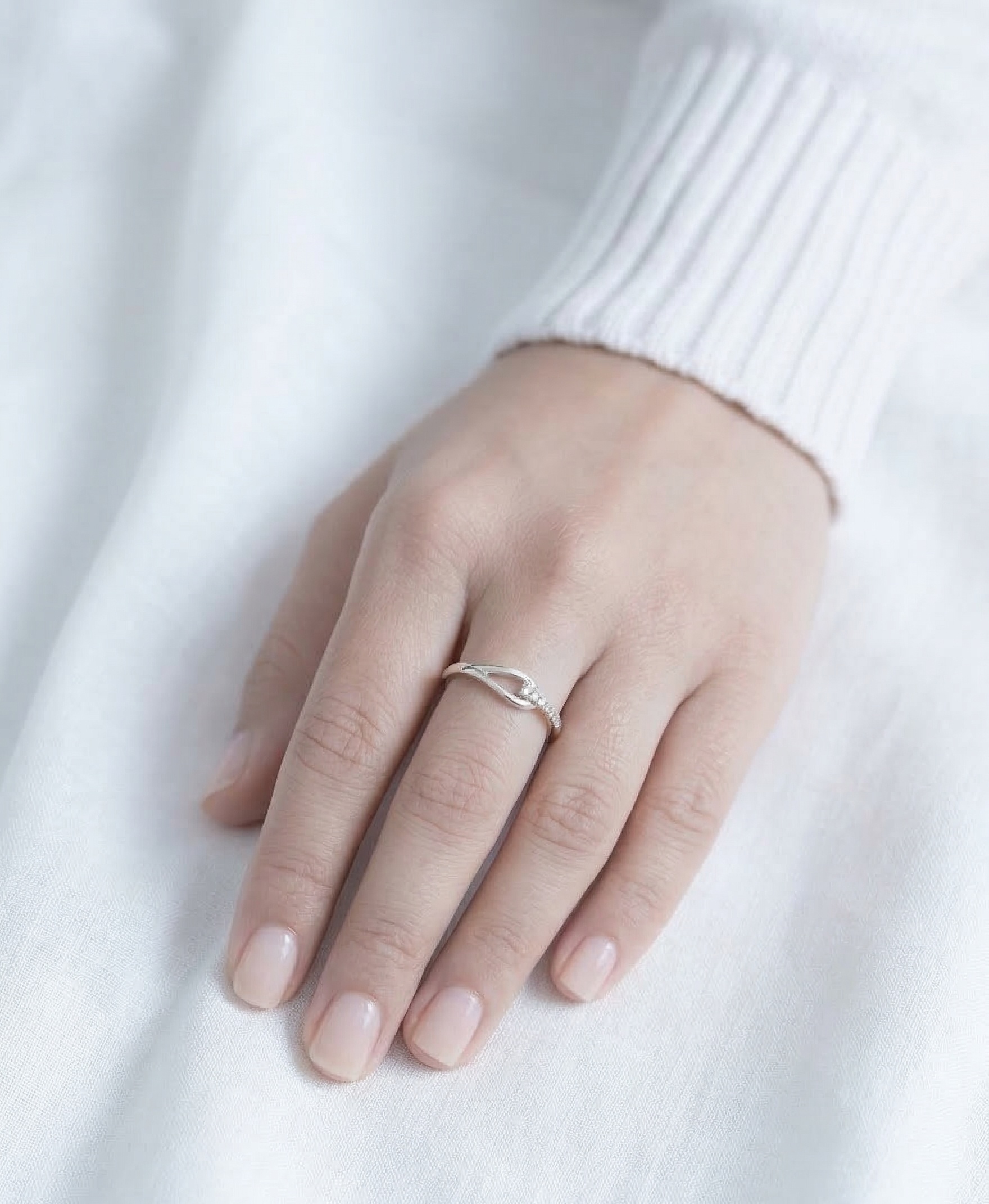 Simple yet stunning, this Silver Twisted Wave Crystal Ring is the perfect everyday fine-look ring for the modern woman. The band features a graceful twisted or crossed wave design at the top, accented with a small row of tiny sparkling crystals right at the crossover point — adding just the right amount of shimmer without being over the top.
